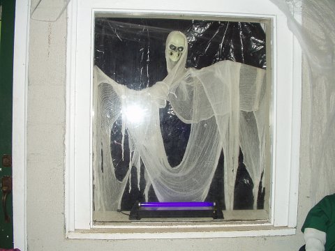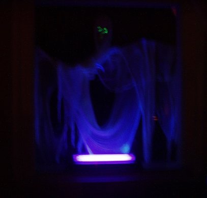 in the porch window with the blacklight on.